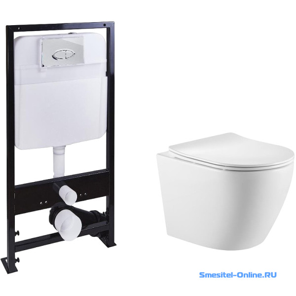 Унитаз подвесной безободковый с инсталляцией SantiLine SL-5027+SL-01