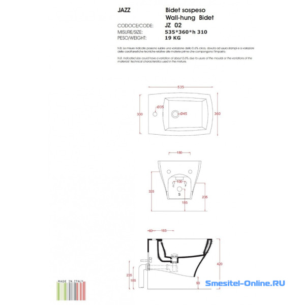 - Тип изделия: биде