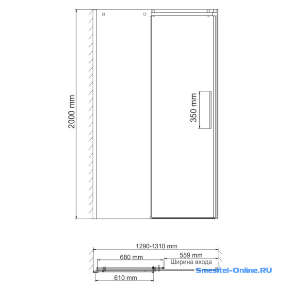 Дверь в нишу 130 см Wasserkraft Alme 15R30
