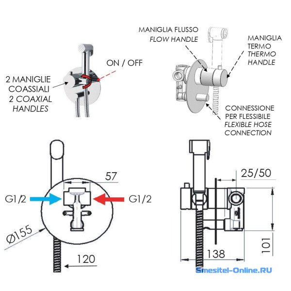 | Оснащение | крепления, шланг, гигиеническая лейка, держатель для душа |