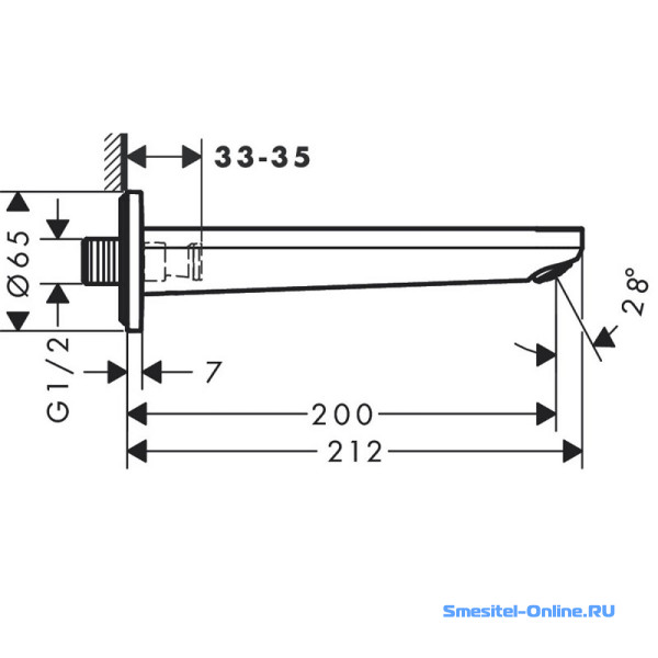 - Длина излива: 20 см