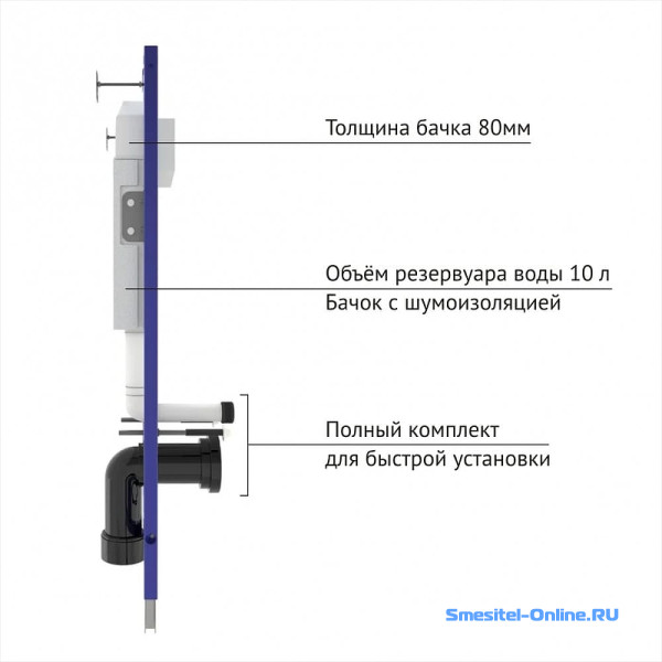 - Тип изделия: комплект унитаз с инсталляцией