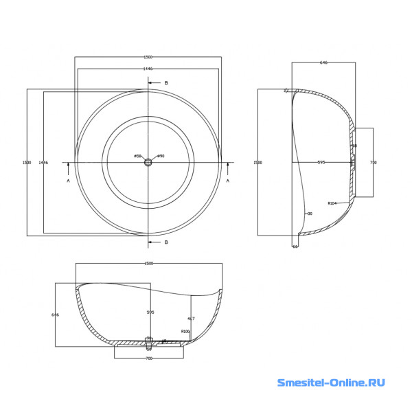 Ванна 150х150 Abber Kristall AT9705Koralle розовая