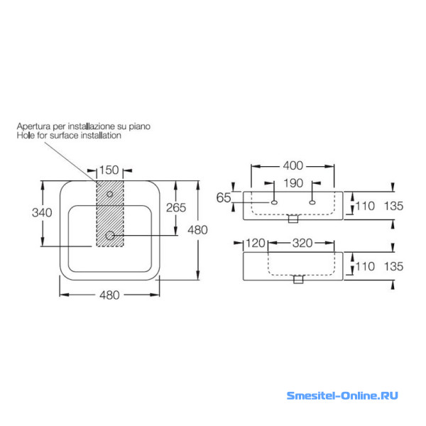 Раковина на столешницу 48x48 см Hatria Happy Hour Y0M701