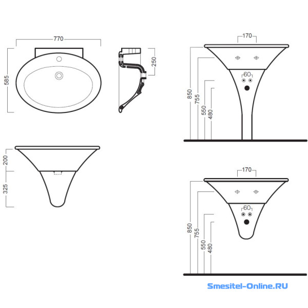 - Тип изделия: подвесная, накладная, с полупьедесталом, с пьедесталом