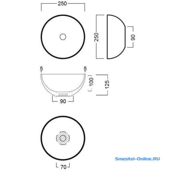 - Отверстие для смесителя: без отверстий