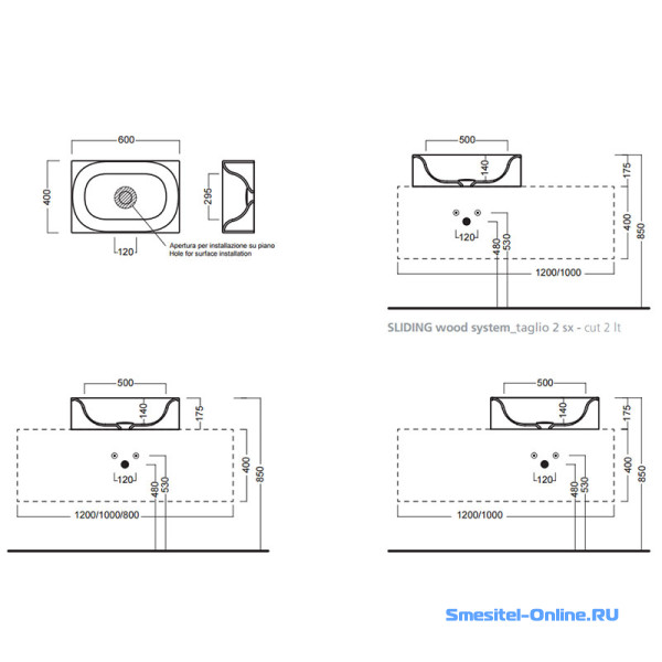 Накладная раковина 60x40 см Hatria Valley Y1GD01