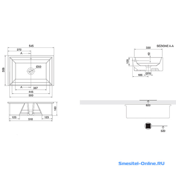 - Отверстие для смесителя: без отверстий