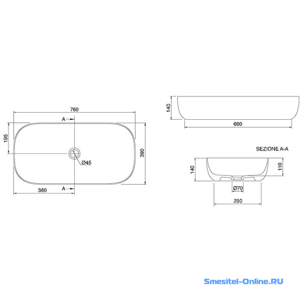 - Отверстие для смесителя: без отверстий