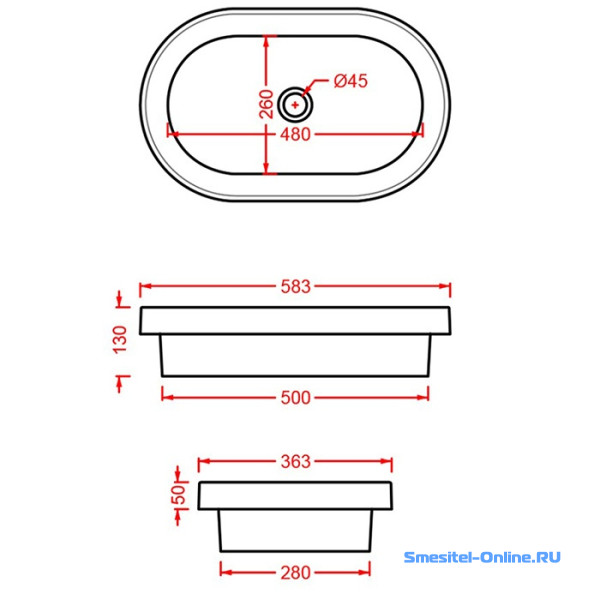 - Отверстие для смесителя: без отверстий