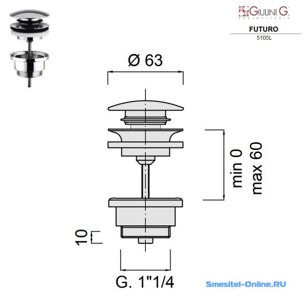 Донный клапан Giulini F5105L хром