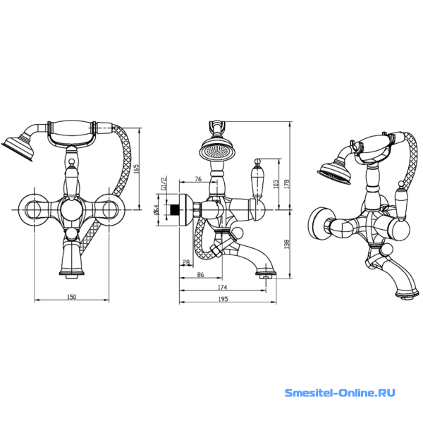 Смеситель для ванны Boheme Tradizionale Oro 283-MR-W золото