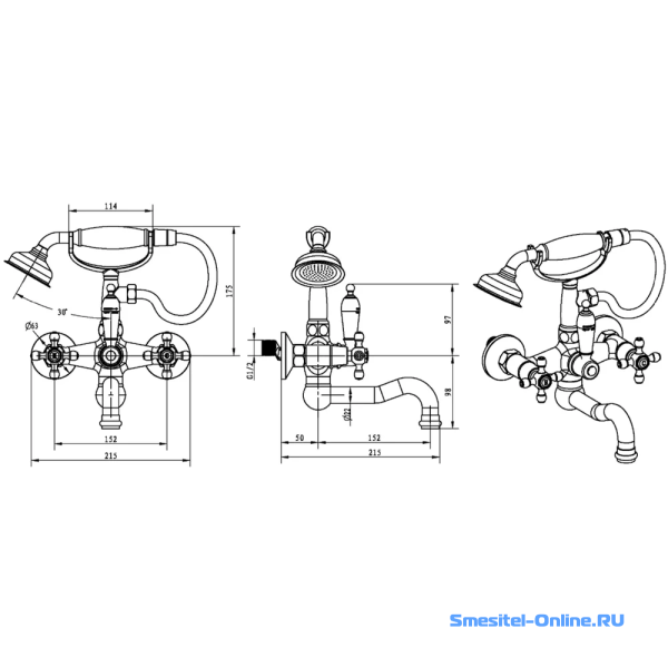 Смеситель для ванны Boheme Tradizionale Oro 293-Ceramic золото