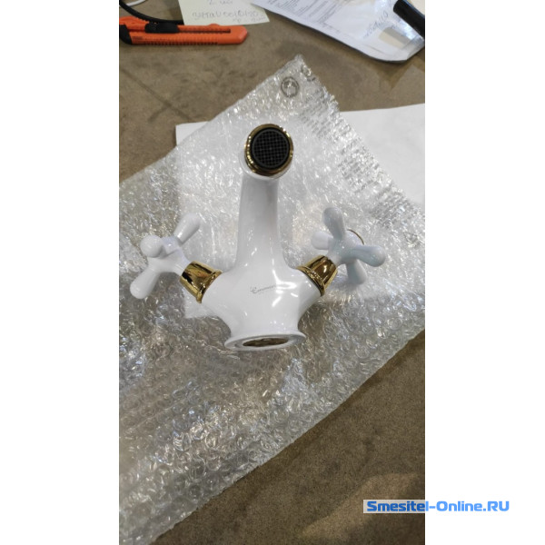 Смеситель для раковины Emmevi Deco Classic 12913BO белый золото