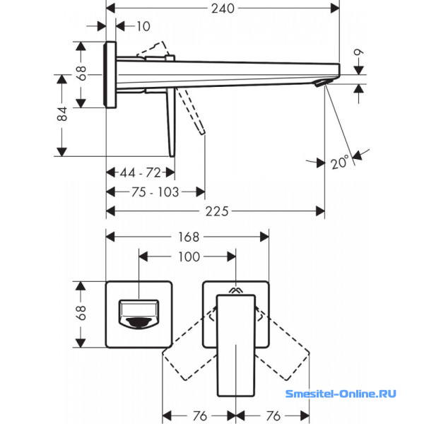- Длина излива: 22.5 см