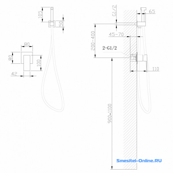 | Оснащение | скрытая монтажная часть, шланг для душа, держатель для душа |