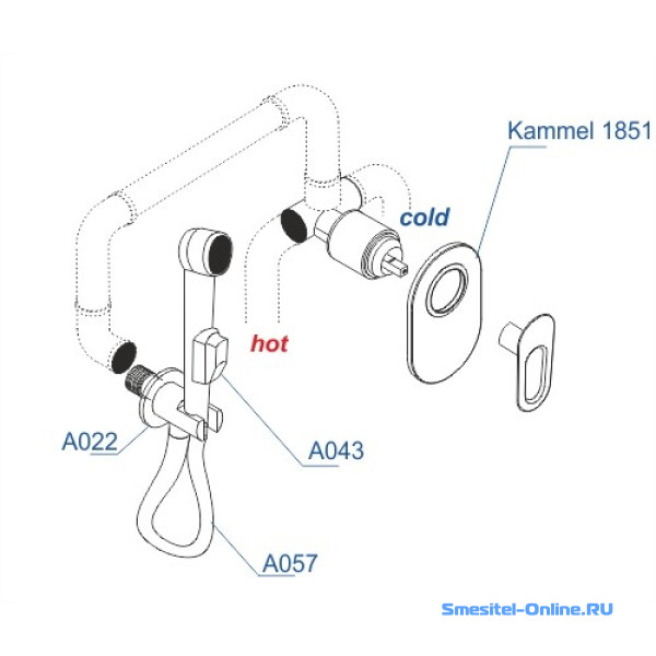 Смеситель для душа с гигиеническим набором Wasserkraft Kammel A111857 со шлангом 120 см