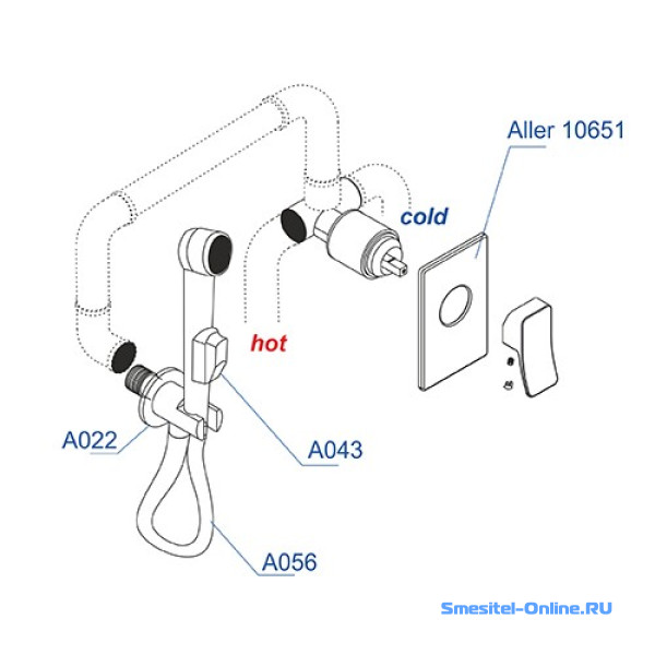 Смеситель для душа с гигиеническим набором Wasserkraft A010656 со шлангом 100 см