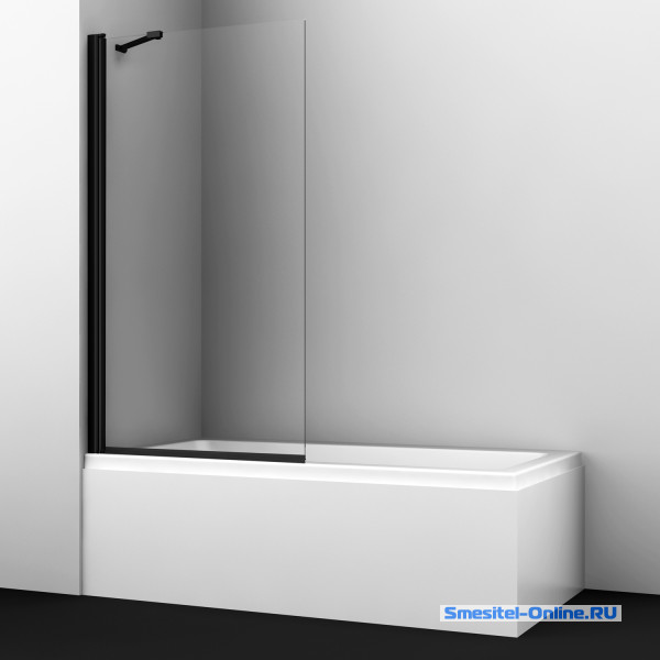 Стеклянная шторка на ванну 80 см Wasserkraft Berkel 48P01-80 BLACK Fixed