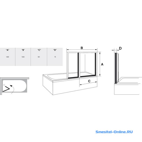- Тип изделия: шторка для ванны