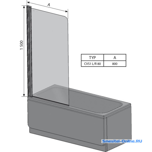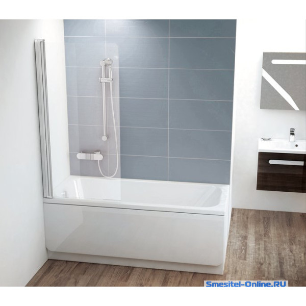 Шторка на ванну 80 см Ravak CVS1-80 блестящий+ транспарент 7QL40C00Z1
