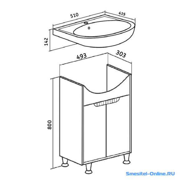 Тумба под раковину 50 Runo Эко 00-00001337 железный камень