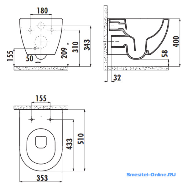 | Режим слива воды | определяется механизмом системы инсталляции |