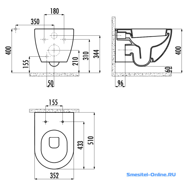 | Режим слива воды | определяется механизмом системы инсталляции |
