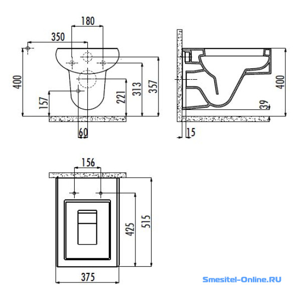 | Режим слива воды | определяется механизмом системы инсталляции |
