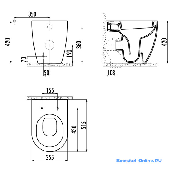 | Режим слива воды | определяется механизмом системы инсталляции |