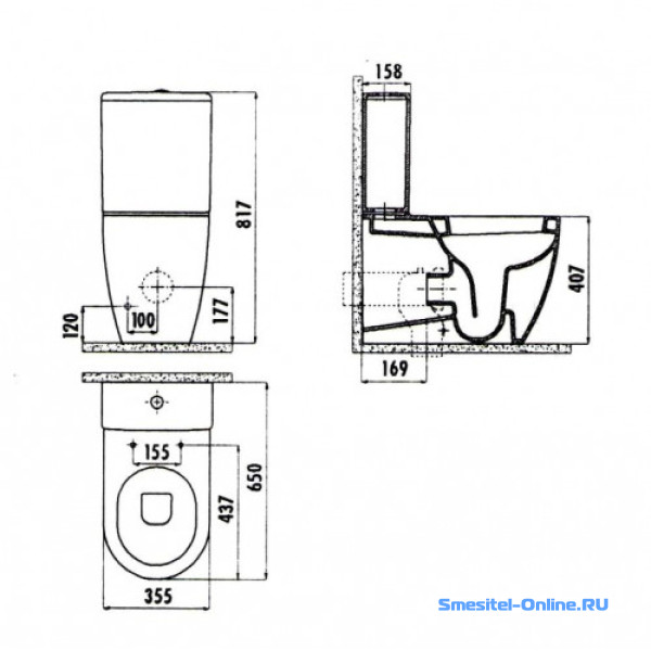 | Режим слива воды | определяется механизмом системы инсталляции |