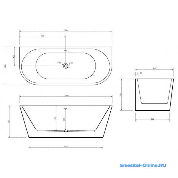 Ванна акриловая 150х80 Abber AB9216-1.5