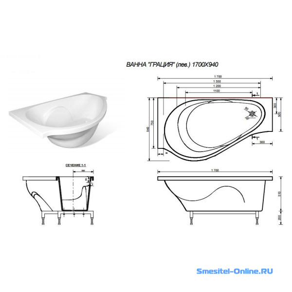 Ванна 170х94 Эстет Грация ФР-00000633