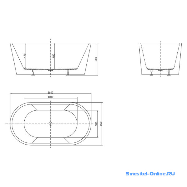 Ванна свободностоящая 160x80 Belbagno BB202-1600-800