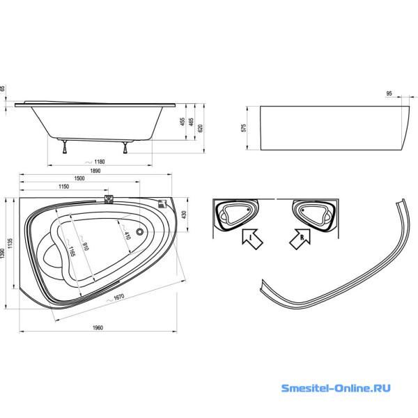 - Монтаж: угловой, пристенный