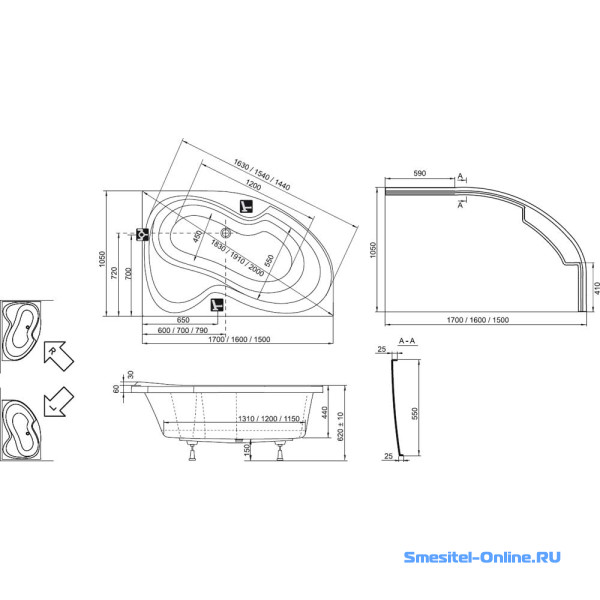 - Монтаж: угловой, пристенный