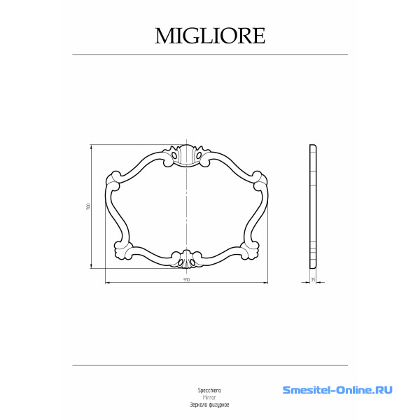Зеркало 92x70 см Migliore Complementi Ml.Com-70.714.Do золото новый арт. 30492